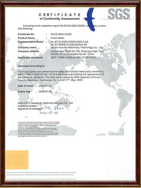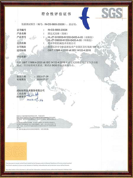 護(hù)籠直梯SGS標(biāo)準(zhǔn)符合性認(rèn)證證書