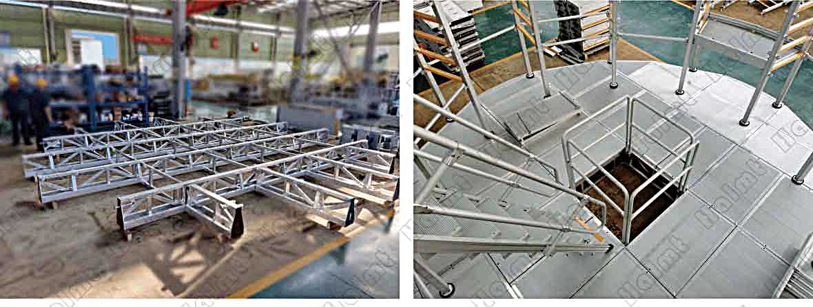 華鋁機(jī)械為瑯琊山水電站量身設(shè)計(jì)制作了一套鋁合金水輪機(jī)組定子檢修平臺(tái),采用獨(dú)特的鋁合金平臺(tái)專用型材和特有結(jié)構(gòu)設(shè)計(jì)方法,產(chǎn)品參數(shù)和承載符合國家標(biāo)準(zhǔn)和法規(guī)的基礎(chǔ)上,實(shí)現(xiàn)安全,便利,輕巧和美觀的產(chǎn)品特點(diǎn)。